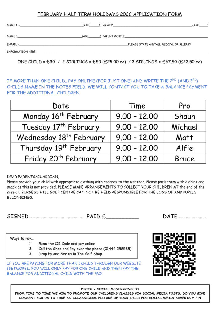 Children's FEBRUARY Half Term Holidays Golf Camps! 2026